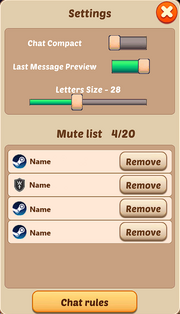 - Mute list: here you can see every player you have muted and the option to remove (unmute) the player.